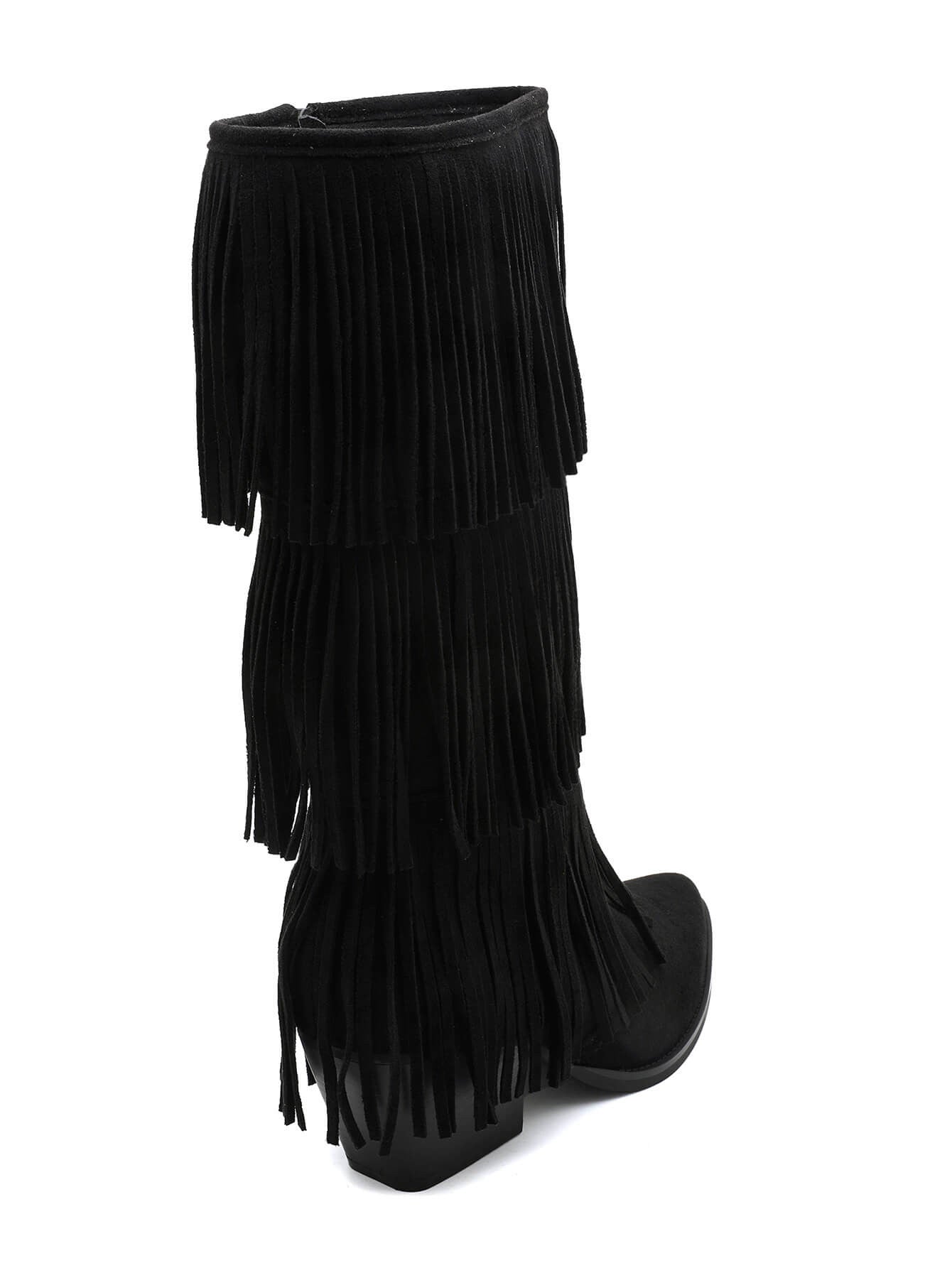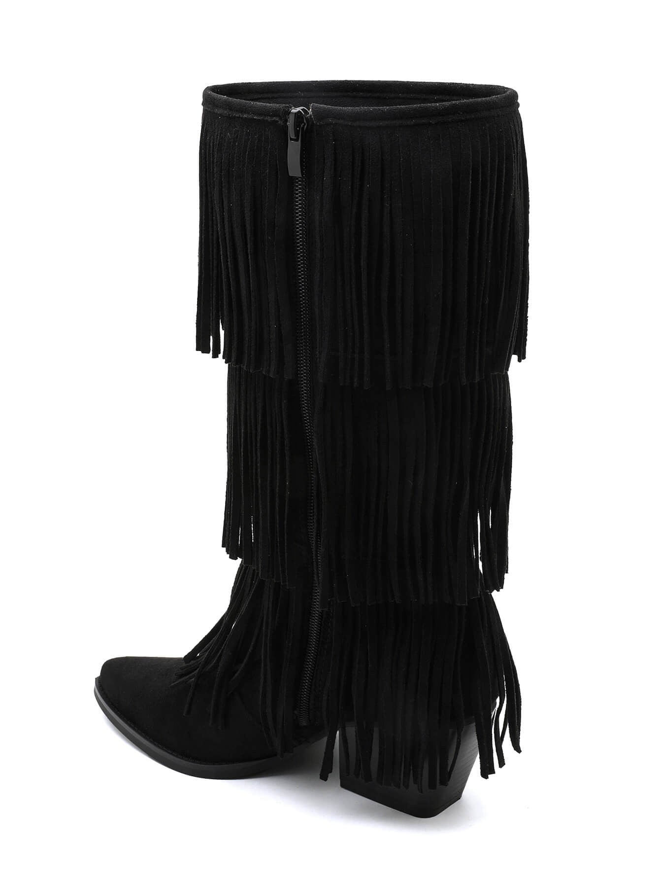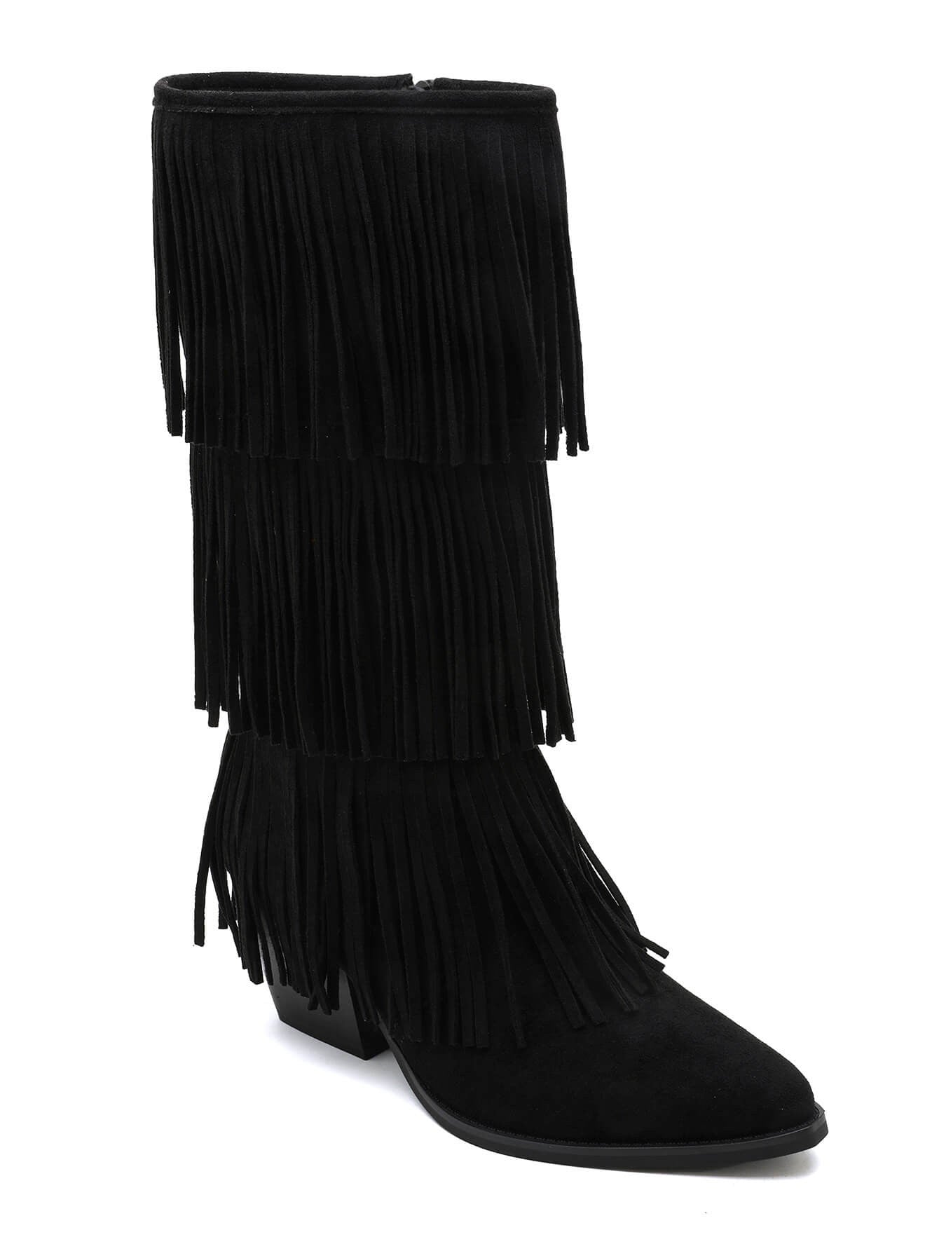 Disse All Over Fringle Støvlene er en ekte showstopper. Fra topp til bunn omringet av frynser, gir de bevegelse og stil til antrekket ditt. Laget av myk suedine, med en komfortabel passform og subtil hæl for daglig bruk.