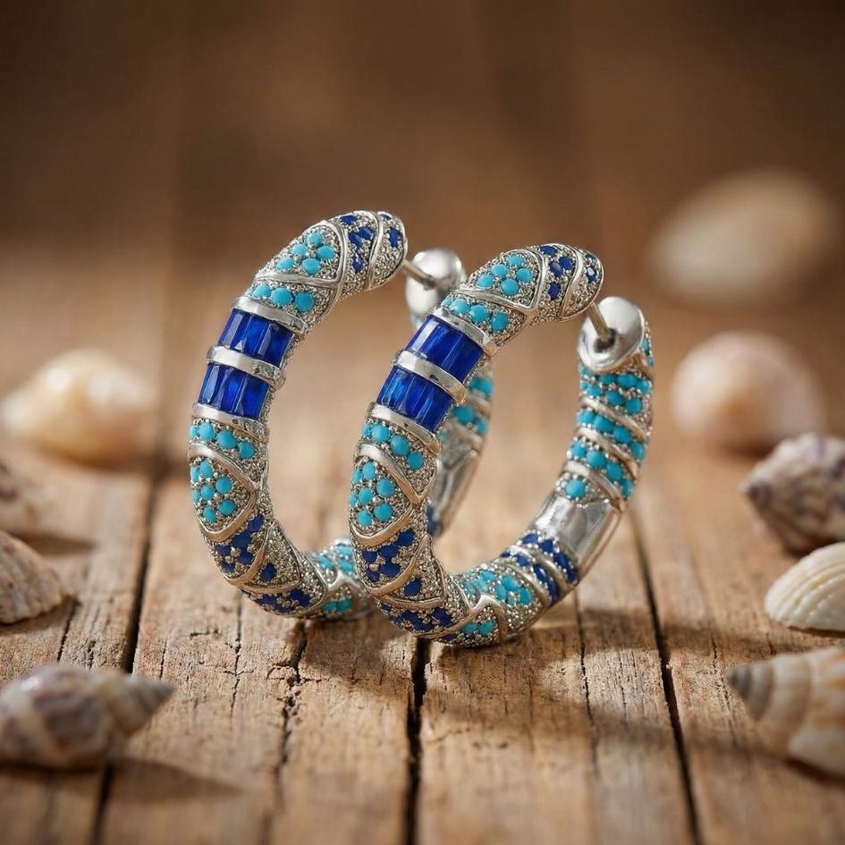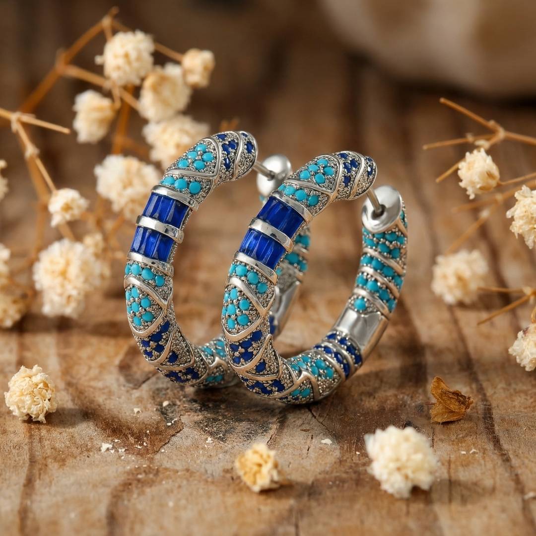 Skulpturerte sirkler som små strømmer: den dype blå fargen møter den blanke, skinnende overflaten i et bohemsk, bestemt og lysende flettverk.