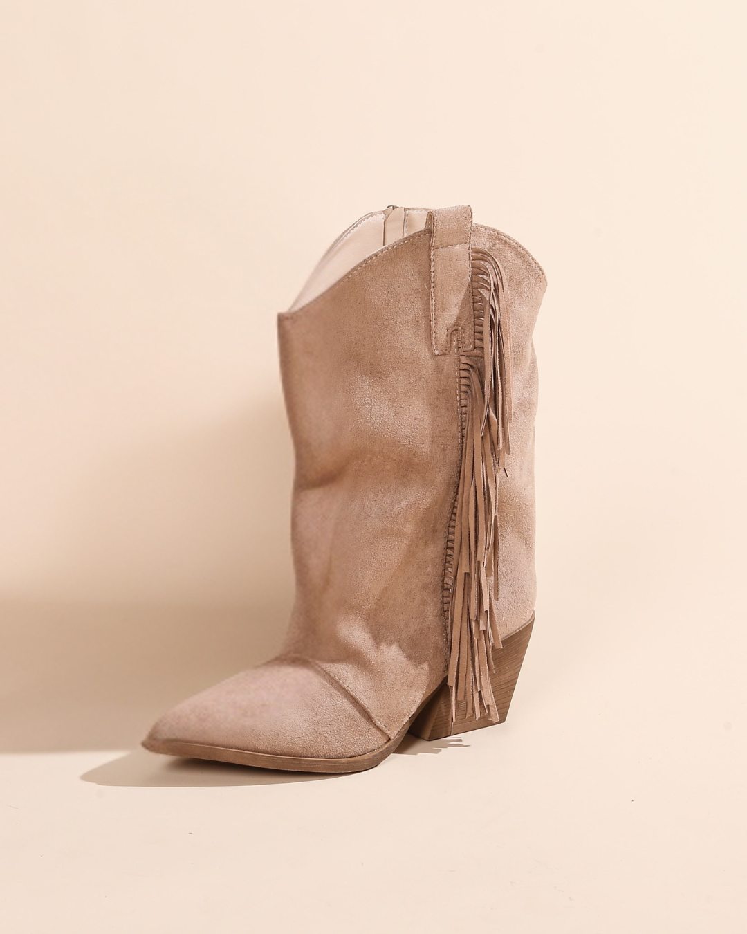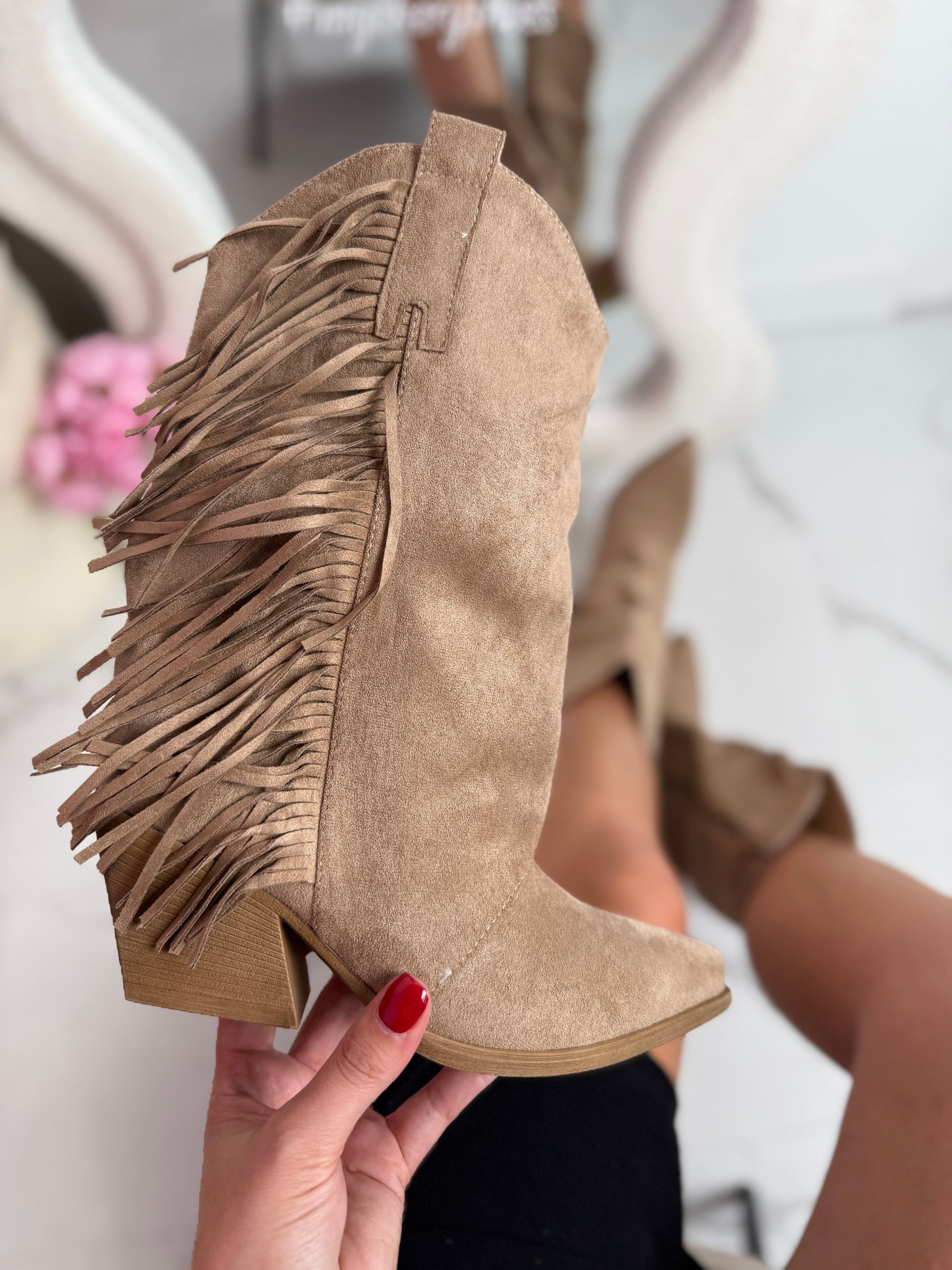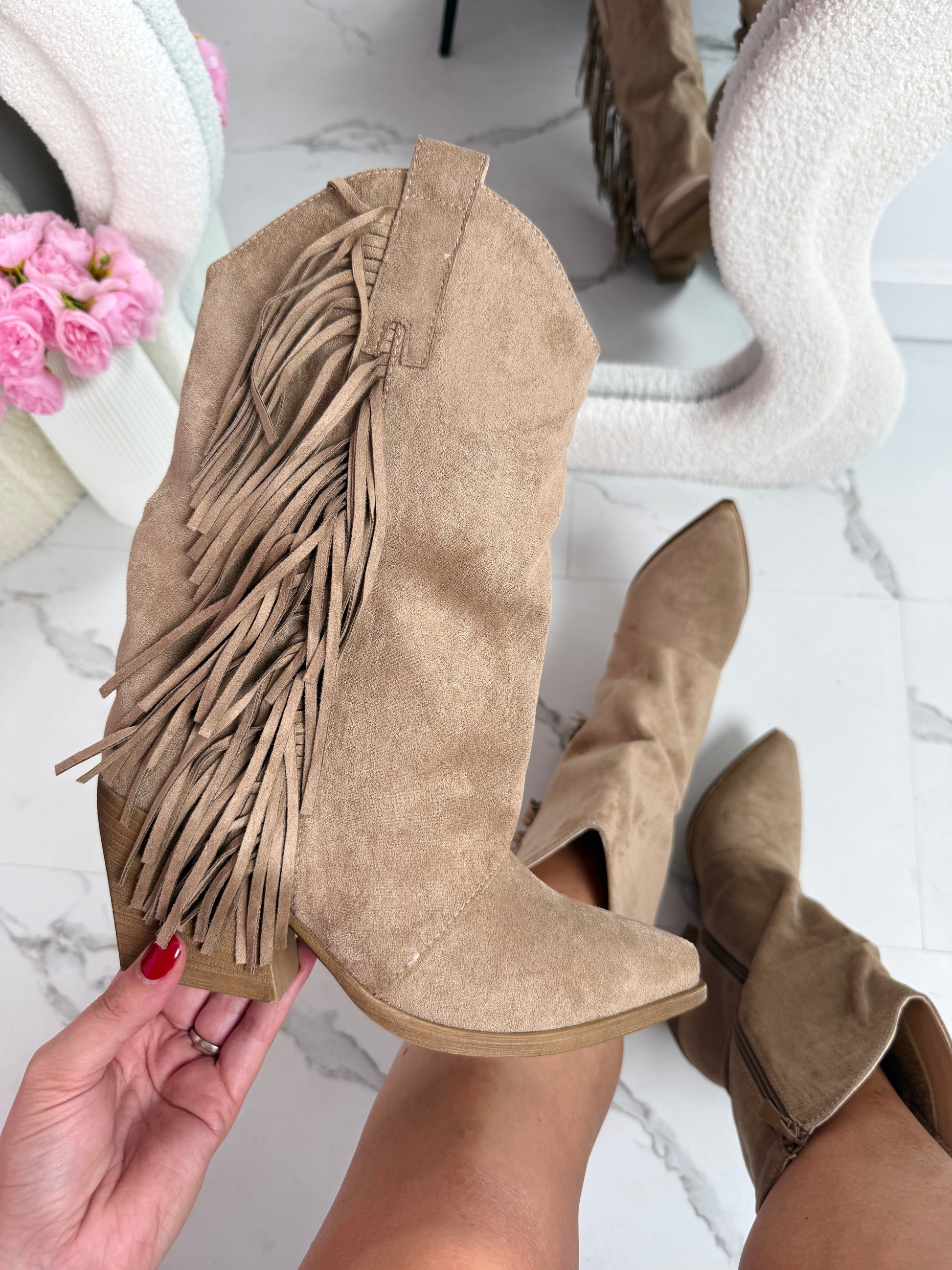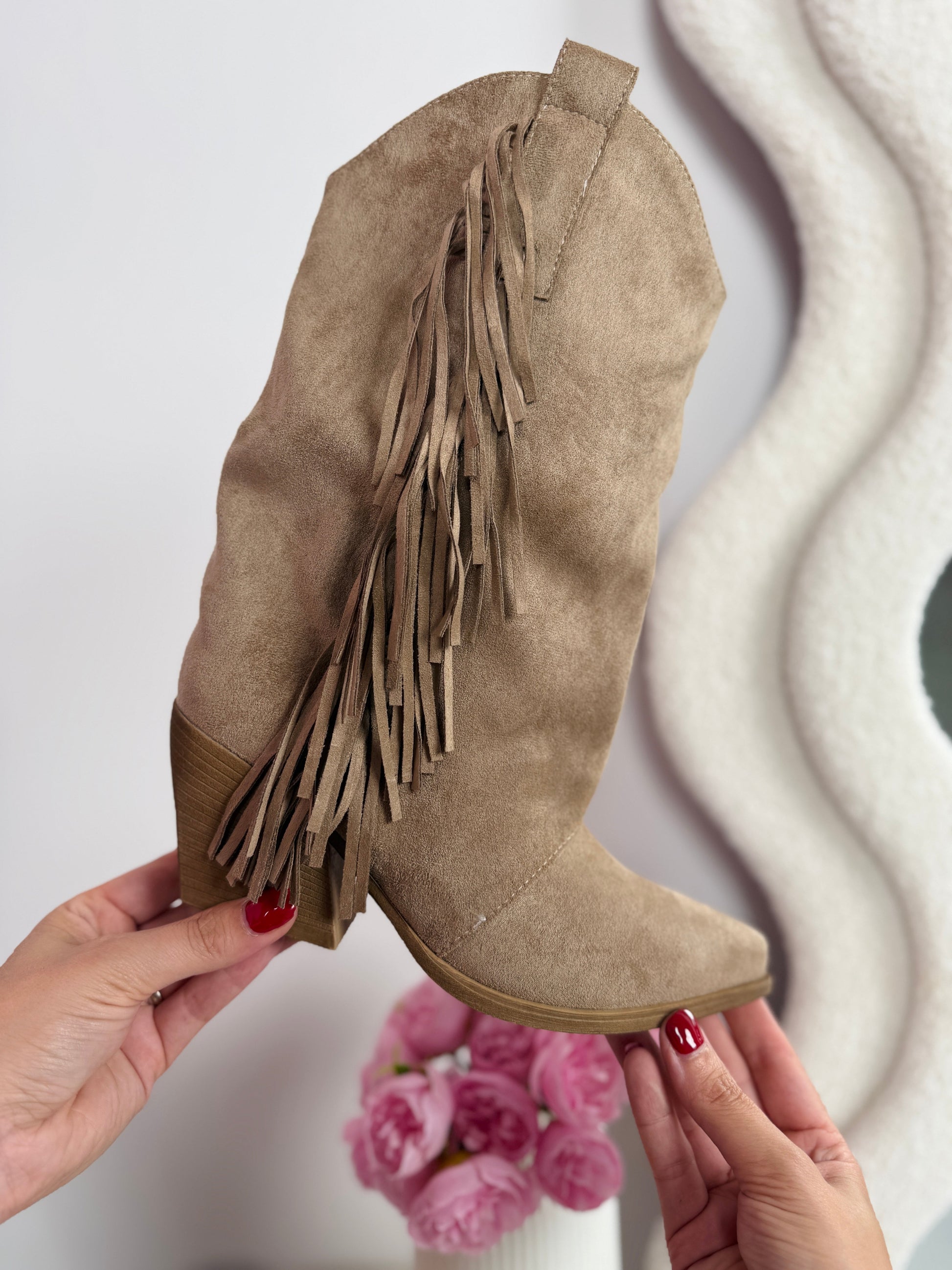 De Fringle Western Støvler er den perfekte blandingen av western-vibber og feminin flair. Suede-looket med lekne frynser og delikate nagler gir hvert antrekk et bohemsk løft. Takket være den komfortable blokkhælen på 5 cm kan du gå med stil – fra lunsjdato til festival.