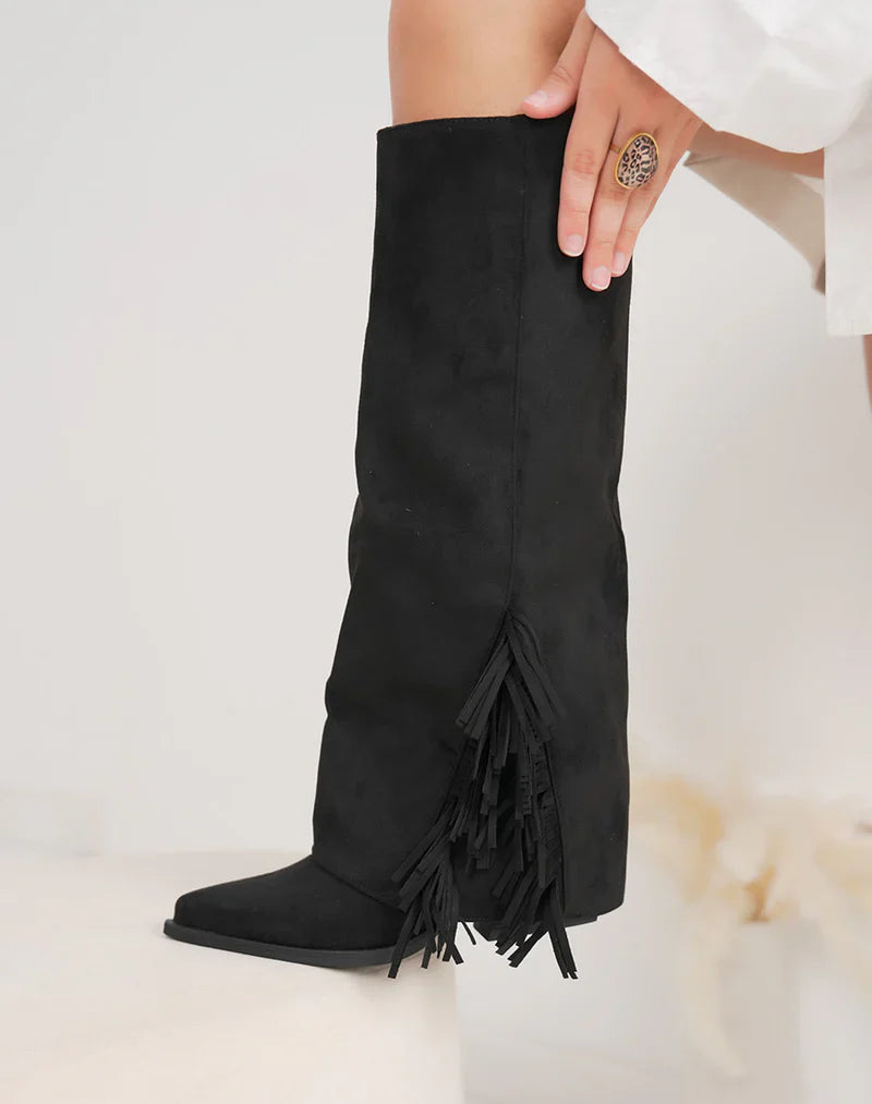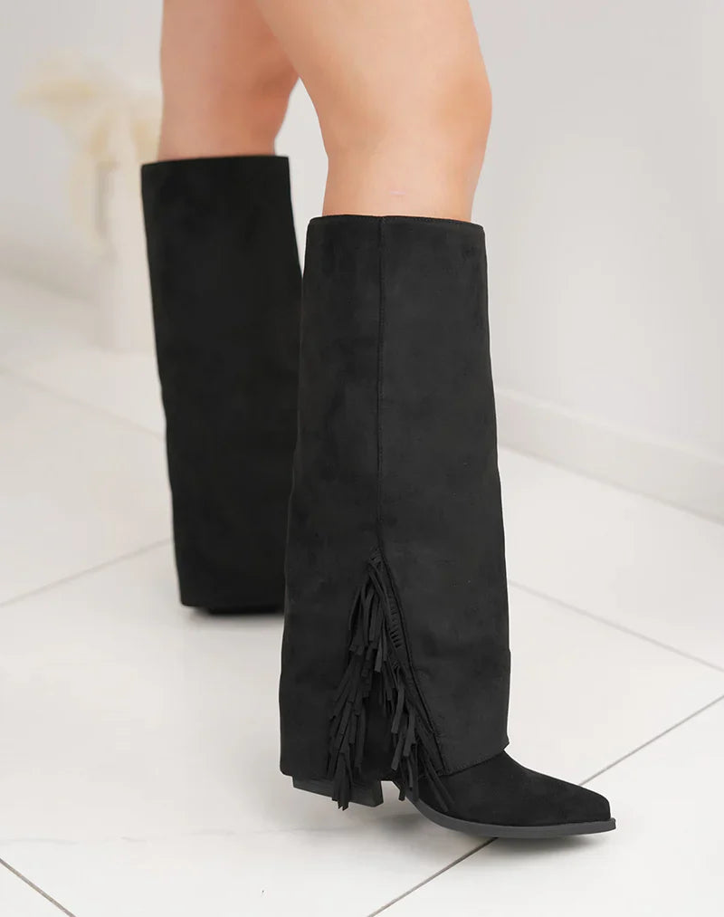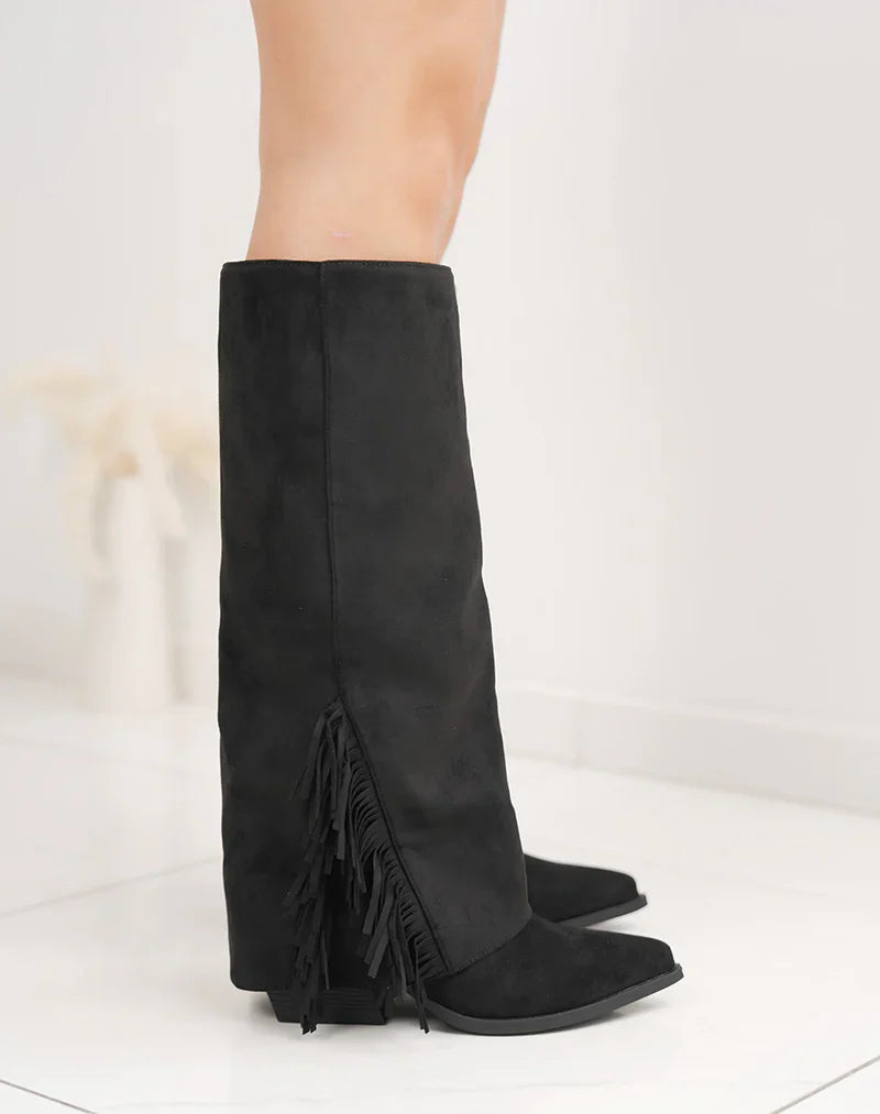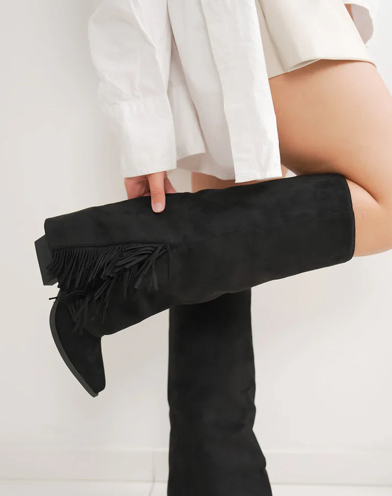 De Misha Støvlene er den perfekte blandingen av stil og komfort. Laget av myk suede med et stilig frynsedetalj langs siden. Den blokkhøyden på 6 cm gir ekstra lengde uten å ofre bærekomfort.