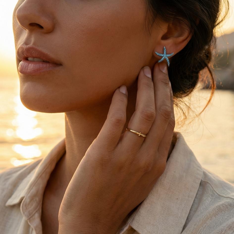 Design i sjøstjerne, lysende men raffinert, perfekt både alene og i kombinasjon med andre sjørelaterte smykker.